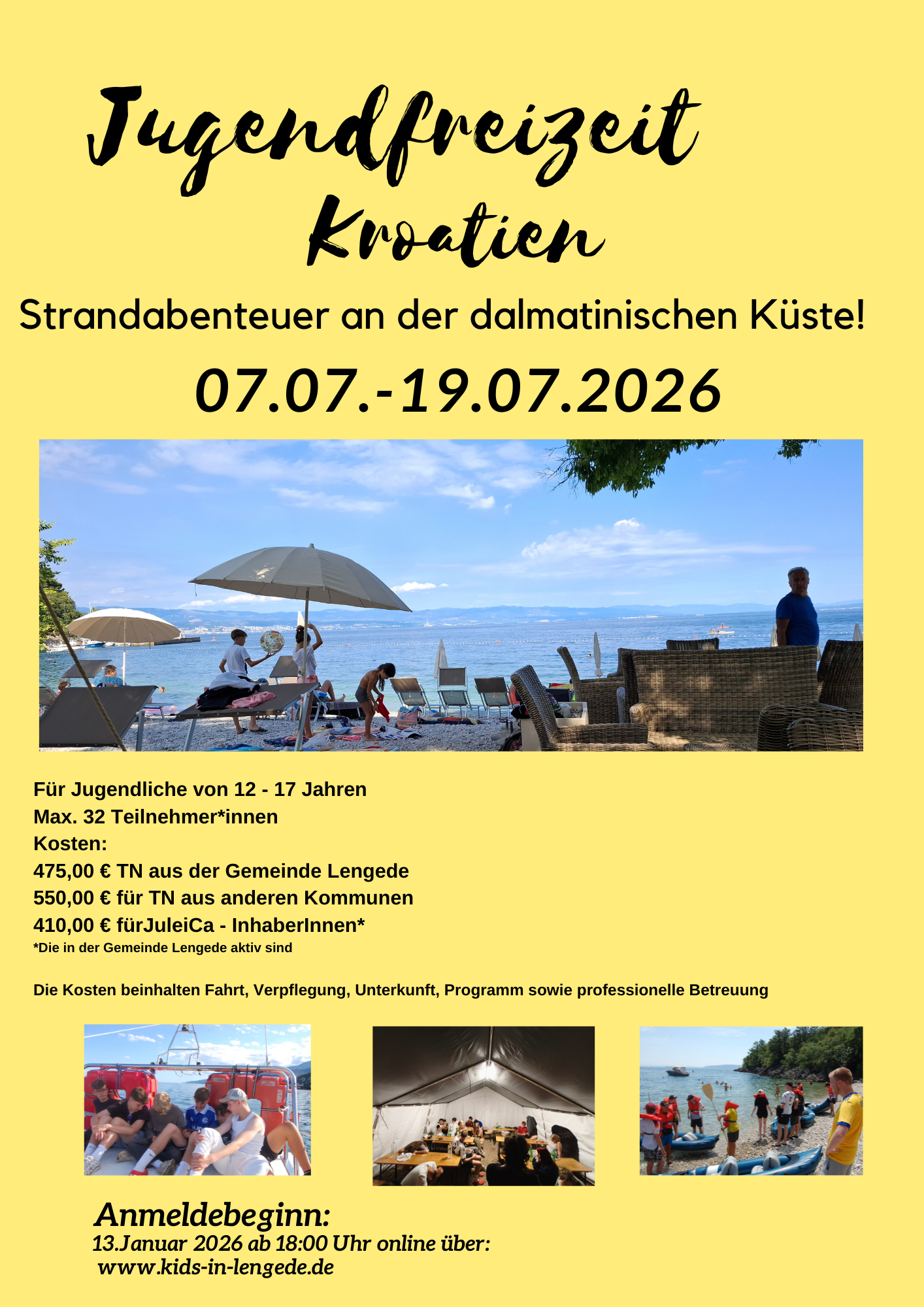 Jugendfreizeit 2026 nach Kroatien (Onlineanmeldung ab 13.01.2026 um 18 Uhr)