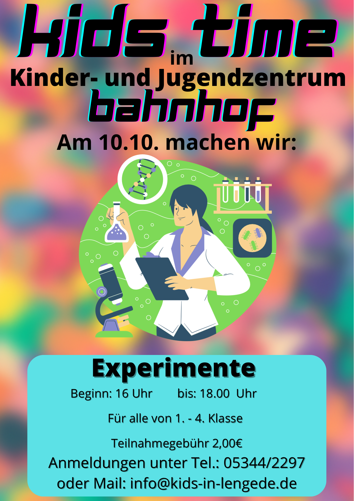 Anmeldezeitraum von Freitag 03.10. bis Mittwoch den 08.10. unter Tel.: 05344/2297 oder per Mail: info@kids-in-lengede.de